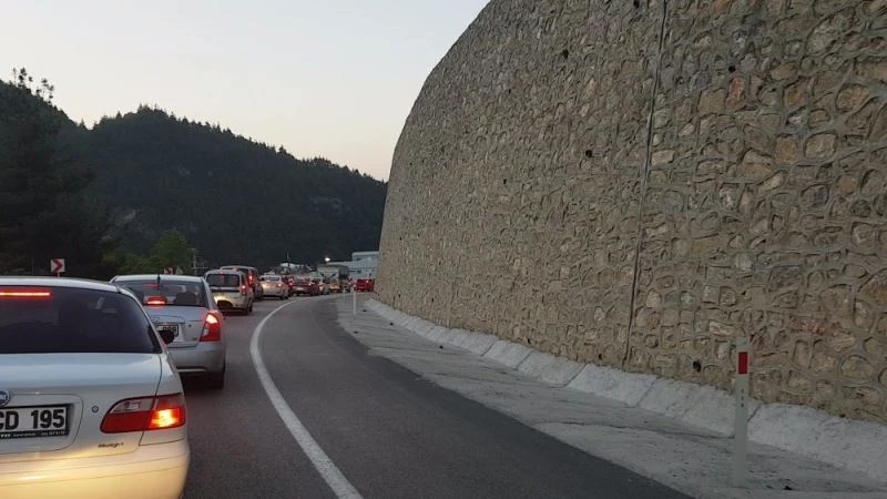Vatandaşlar araçlarıyla Bursa-Orhaneli yolunda uzun kuyruklar oluştururken, trafik zaman zaman durma noktasına geldi.
