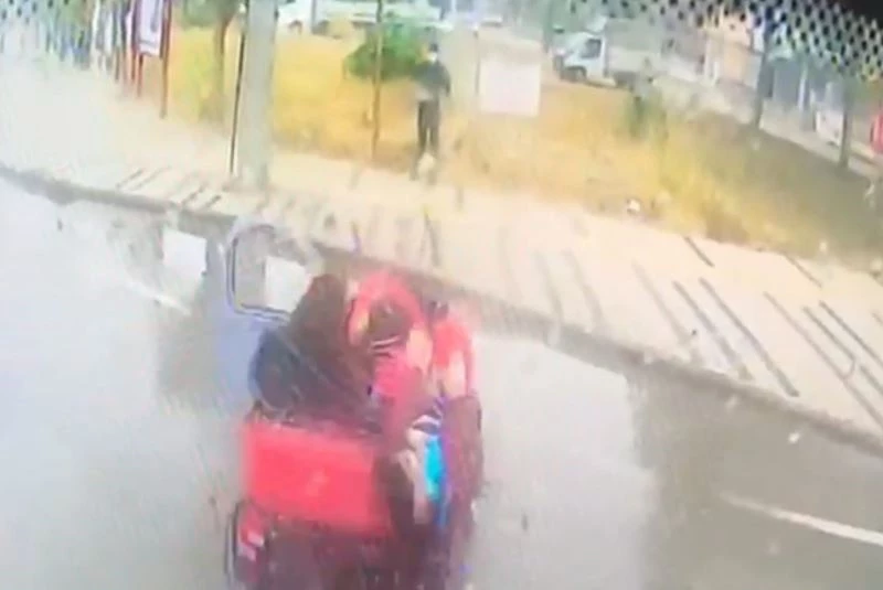Diğer yandan kaza bir işyerinin güvenlik kamerasına an-be-an yansıdı. Görüntülerde, içerisinde 3 kişinin bulunduğu elektrikli aracın kavşaktan çıktığı sırada özel halk otobüsünün çarpması ve elektrikli aracın savrularak kaldırıma çarparak durduğu anlar görülüyor.