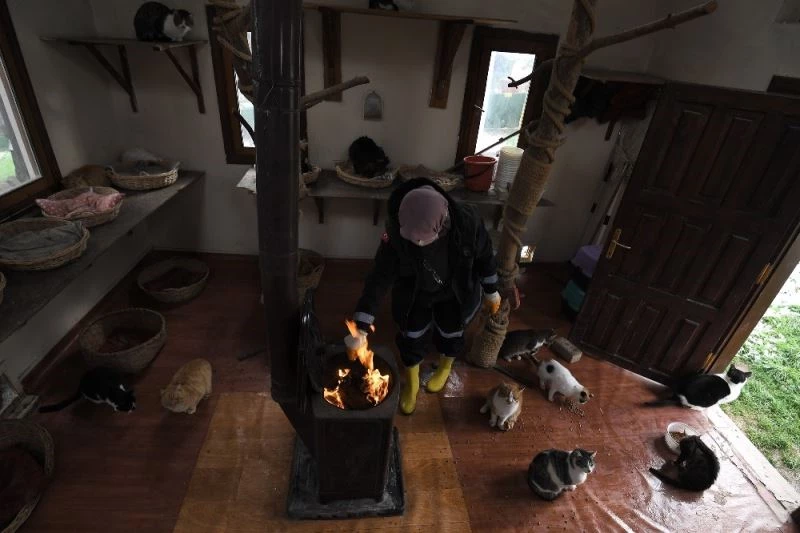 Osmangazi Belediyesi tarafından 114 dönümlük arazi üzerine kurulan Sahipsiz Hayvanlar Doğal Yaşam ve Tedavi Merkezi’ndeki sahipsiz sokak kedileri, ev kedilerini bile kıskandıracak bir yaşam sürüyor. Sadece Türkiye’nin değil Avrupa’nın da en modern hayvan barınağı olma özelliğine sahip tesisteki 65 kedi, 25’er metrekare taban, 8 metre yüksekliğe sahip Osmanlı mimarisine uygun inşa edilen iki villada yaşıyor. Can dostlar, kendilerine ait villalarda göz kamaştıran bir yaşam sürerken, yılın ilk karının yağdığı bu soğuk günlerde üşümesinler diye de kış boyunca düzenli olarak soba yakılıyor. Sobaların yakılmasıyla birlikte villaların içi oda sıcaklığından daha sıcak hale geliyor.