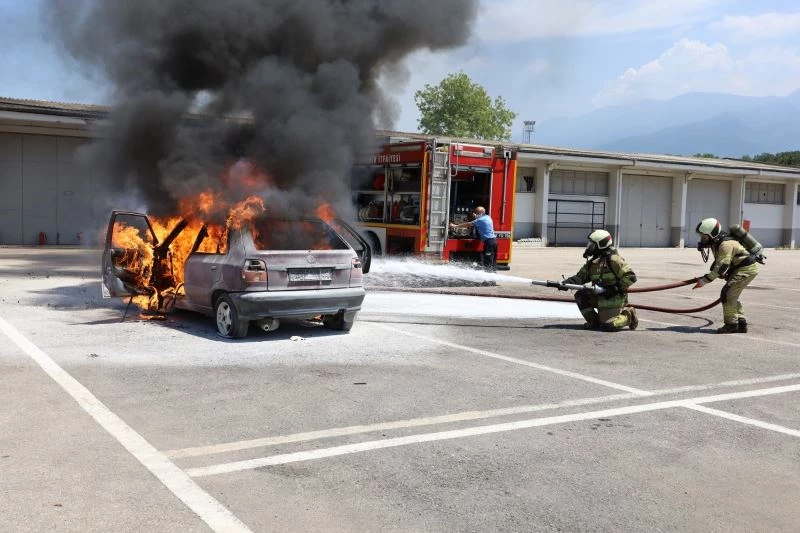 Tatbikatta, yerleşke içerisindeki bir otomobilde çıkan yangına da ilk müdahaleyi Makine Bakım ve Onarım Şube Müdürlüğü personeli yangın söndürme tüpleriyle yaptı. Daha sonra olay yerine gelen itfaiye ekipleri, yangını tamamen söndürüp, soğutma çalışmalarını gerçekleştirdi. Gerçeği aratmayan tatbikatta devrilen bir varilden sızan kimyasal madde de hemen olay yerinde ekipler tarafından kontrol altına alındı.