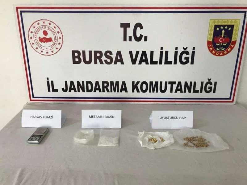 Bursa’da jandarma ekiplerinin 2 şüpheli şahısın uyuşturucu madde ticareti yaptığı bilgisini alması üzerine şüphelilerin evinde yapılan aramada 46 gram metamfetamin, 109 adet captagon hap, ve 184.1 gram esrar ele geçirilirken şüpheli 2 şahıs tutuklanarak cezaevine gönderildi.