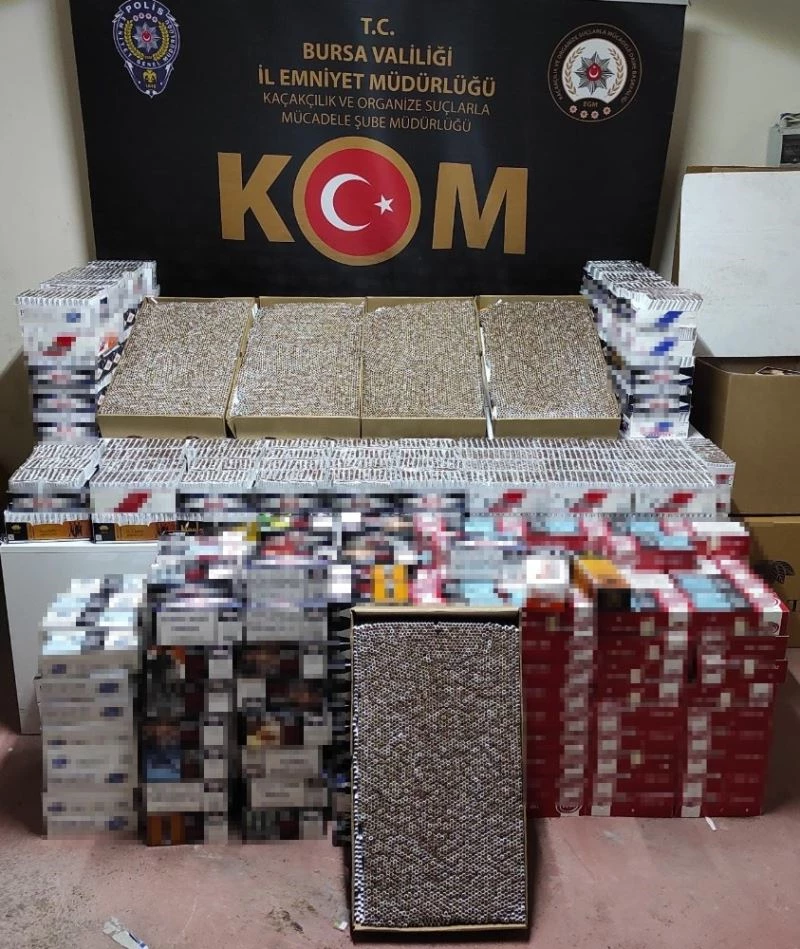 Bursa emniyetinin yaptığı kaçak sigara imalathanesi baskınında binlerce sigara ele geçirildi.