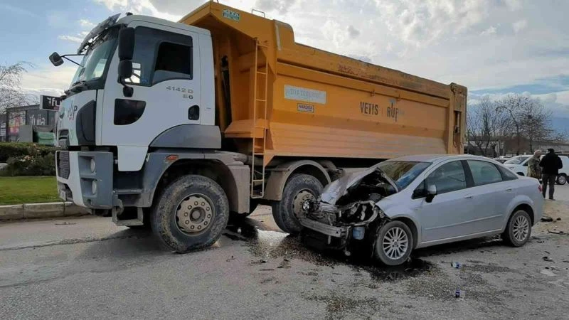 Bursa’da kamyon ile otomobilin çarpışma anı kamerada
