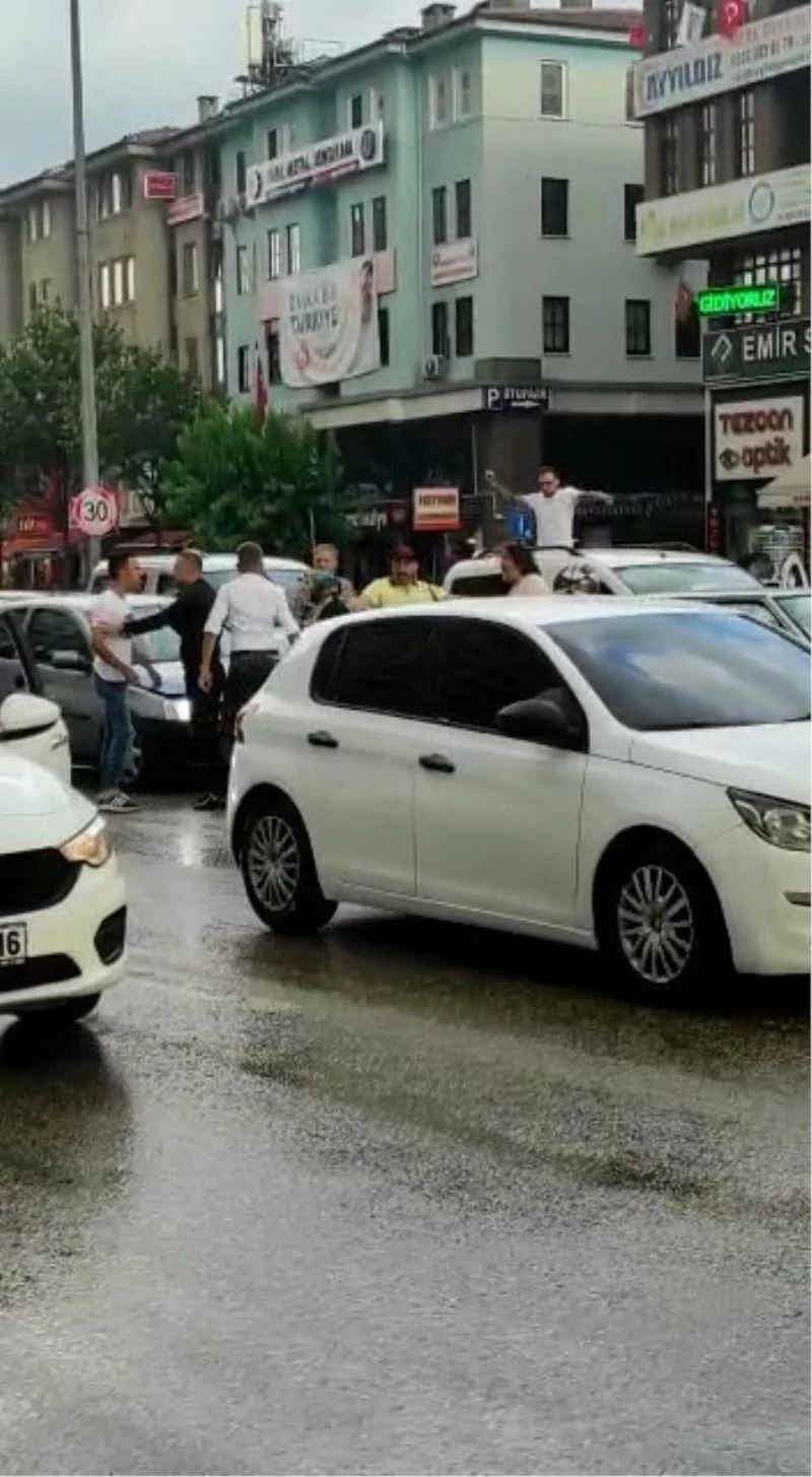 Kaza, merkez Osmangazi ilçesi Haşimişcan Caddesi üzerinde meydana geldi. İddiaya göre, sağanak yağış sonrası kayganlaşan yolda zincirleme trafik kazası meydana geldi. Kavga sonucu araç sürücüleri birbirine girdi. Çevredeki vatandaşların ve diğer sürücülerin araya girmesiyle ortam sakinleştirilirken; o anlar bir vatandaşın cep telefonu kamerasına anbean yansıdı.