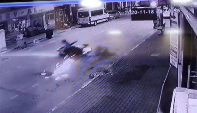 Edinilen bilgiye göre üzerinde iki kişinin bulunduğu motosiklet kontrolden çıkarak sürüklenmeye başladı. Kıvılcımların çıktığı motosikletten bir kişi yere düşerken, sürücüsü motosikletin üzerinde durmayı başardı.