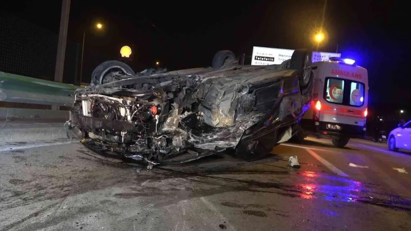 Bursa’da kontrolden çıkan otomobil aydınlatma direğine çarpıp takla attı : 3 ağır yaralı