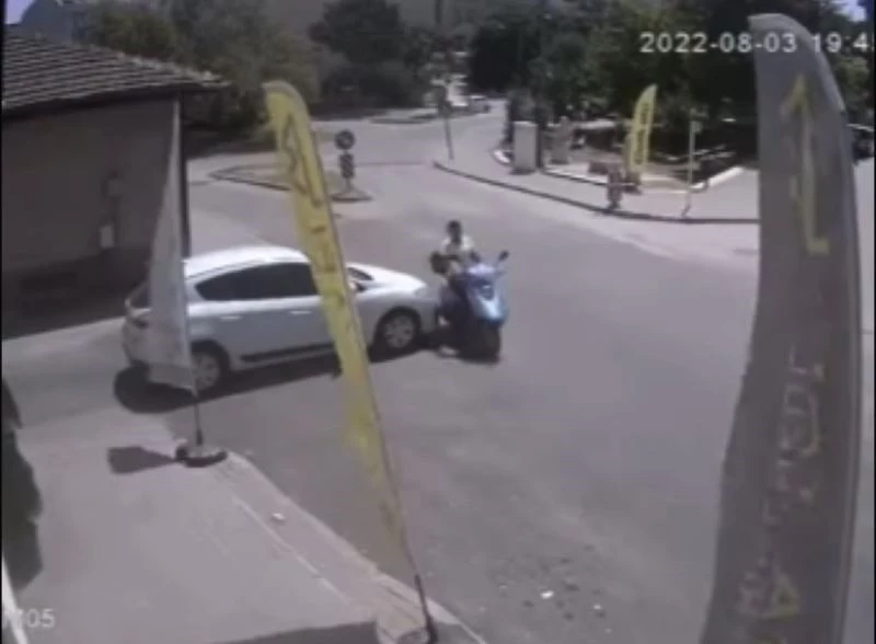 Bursa’da sokaktan çıkan otomobil, ana yolda giden motosiklete çarpmaktan kıl payı kurtuldu. O anlar anbean güvenlik kameralarına yansıdı.