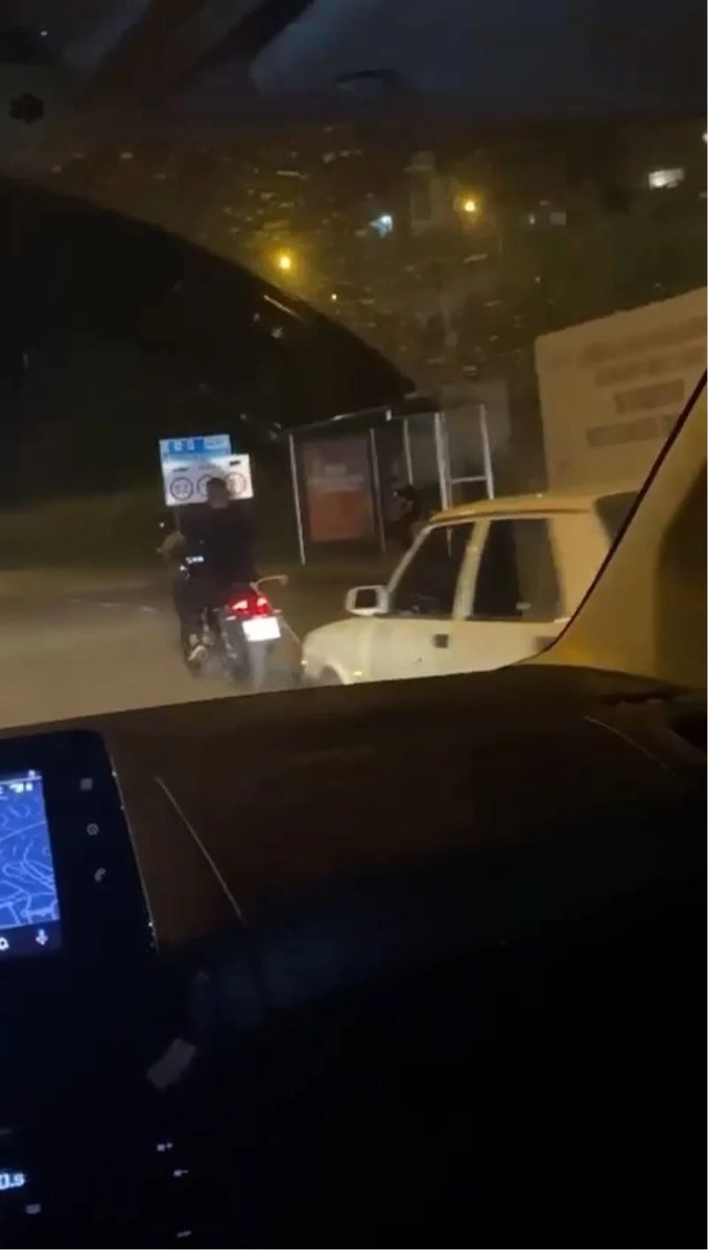 Bursa’da arıza yapan Tofaş marka otomobili motosiklet iple çekti. O anlar trafikteki başka bir sürücünün cep telefon kamerasına yansıdı.