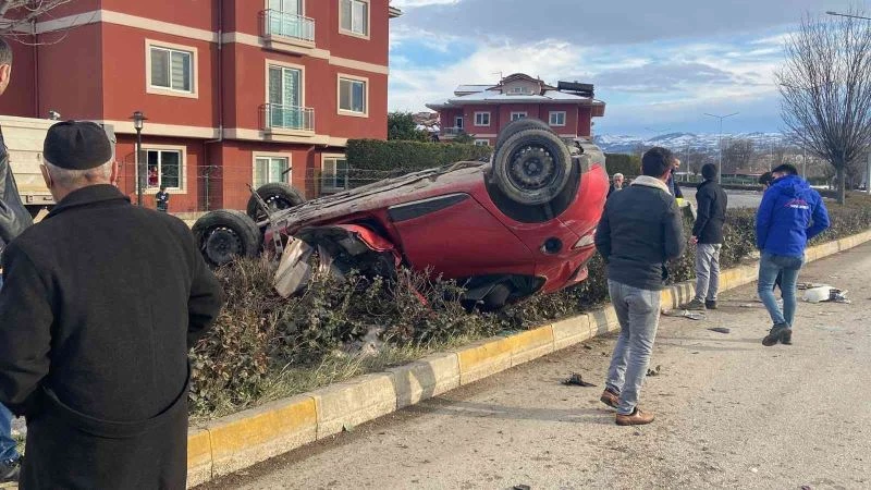 Bursa’da otomobil aydınlatma direğine çarpıp takla attı: 2 yaralı
