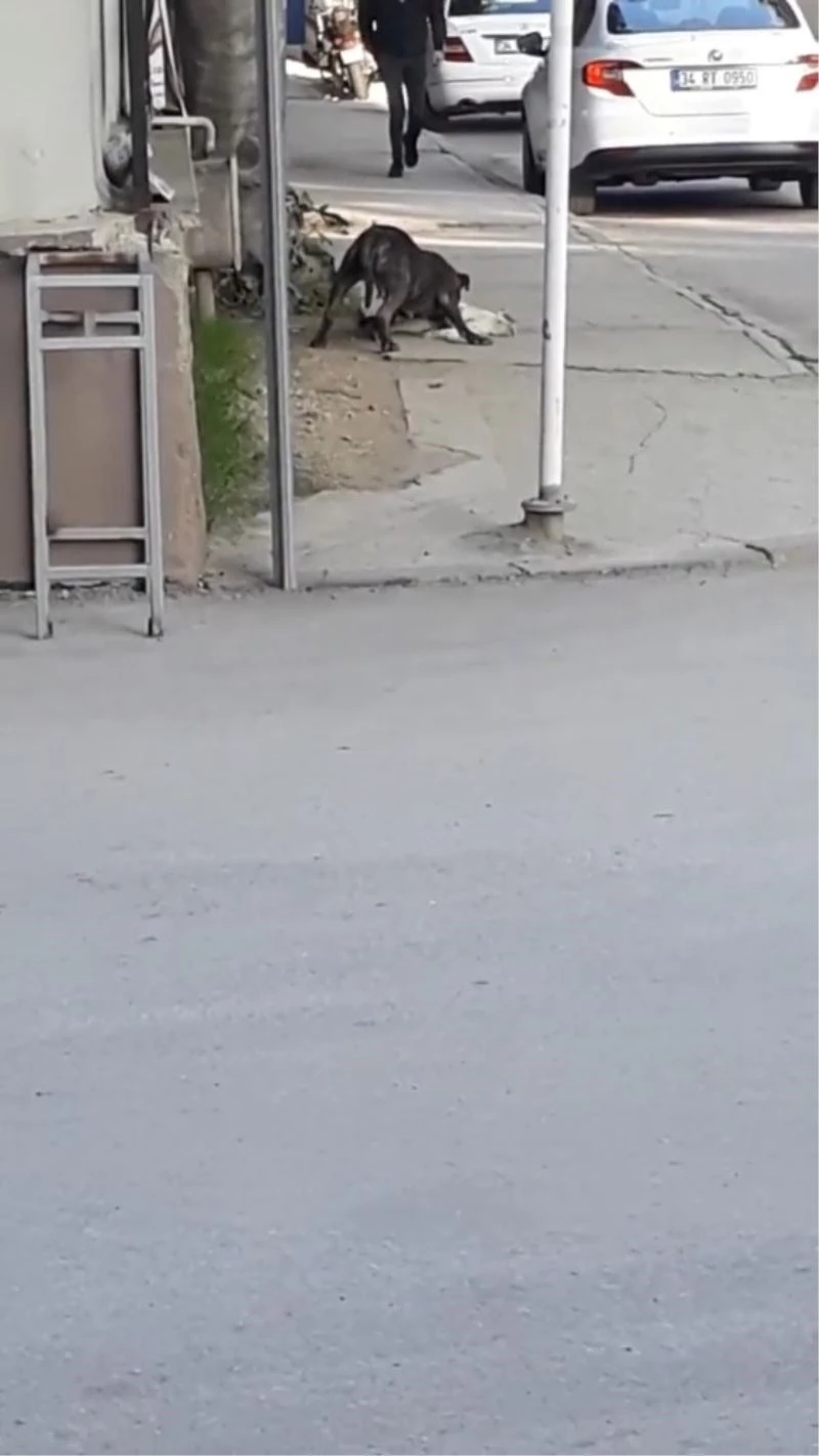 Bursa’da başı boş pitbull köpeğin sokak kedisini parçalama anı saniye saniye cep telefonu kamerasına yansıdı.