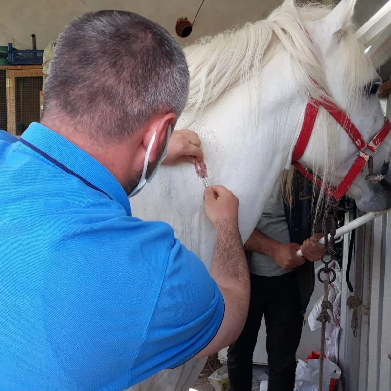 Orhaneli’de rahvan at yarışlarına katılan ve katılacak olan atlara çip takıldı.