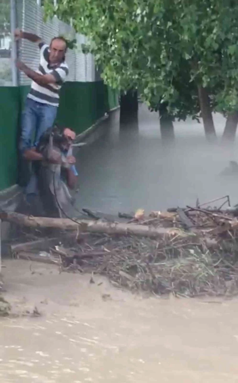 Bursa’nın dağ ilçesi Harmancık’ta dolu yağışı etkili oldu. Şiddetli rüzgarla birlikte yağan dolu ve yağmur sebebiyle, Çayır Mahallesi’nde bulunan dere taştı. Bazı ev ve iş yerlerinde su baskını yaşanırken, sel sularında mahsur kalan bir köpek ise BUSKİ ekipleri tarafından kurtarıldı. O anlar cep telefonu kamerasıyla saniye saniye kaydedildi.