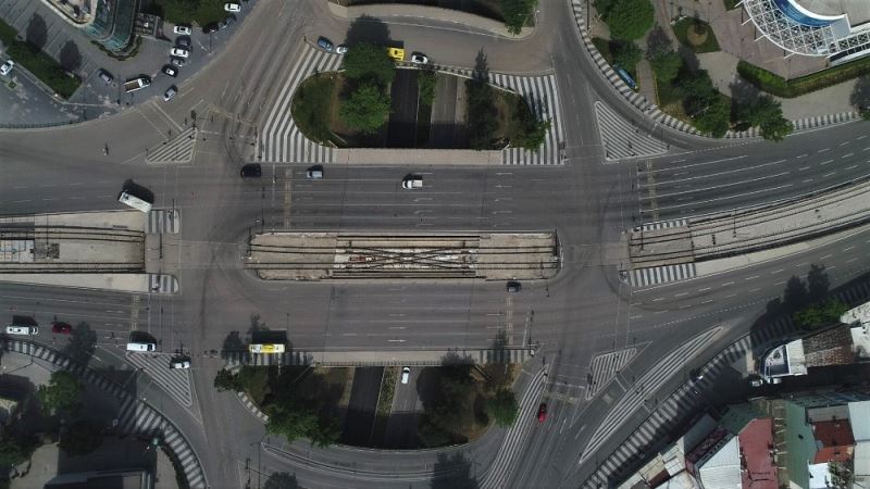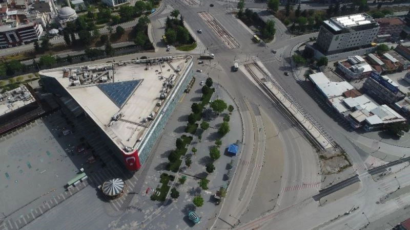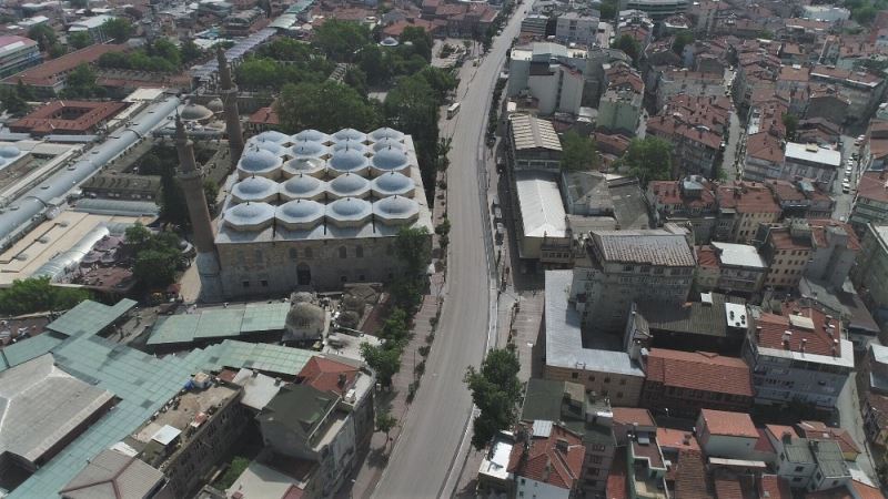 Korona virüs ile mücadele kapsamında bu haftaki sokağa çıkma kısıtlamasının ikinci gününde de sessizliğe bürünen Bursa caddeleri havadan görüntülendi.