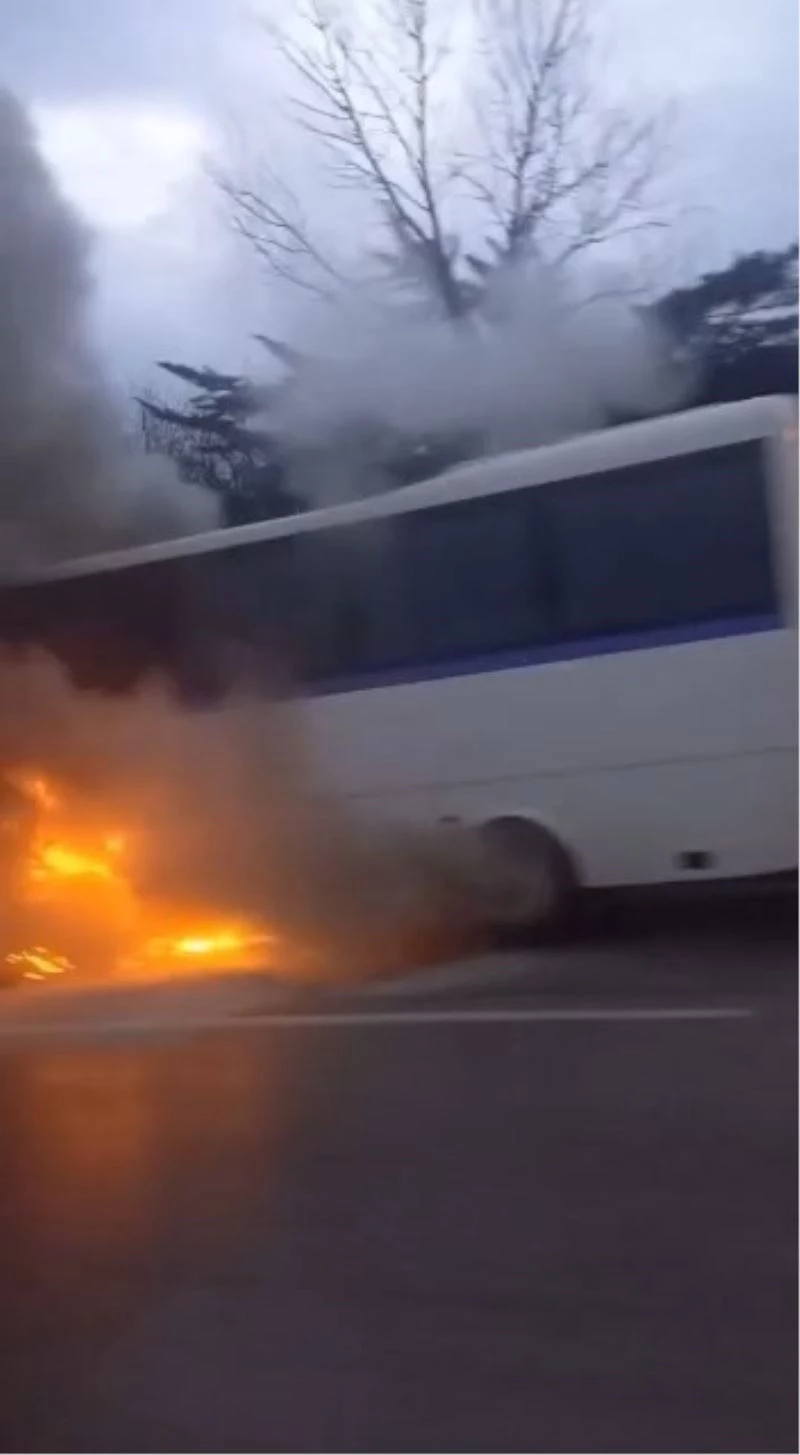 Bursa’da seyir halindeki servis otobüsü alev alev yandı. O anlar cep telefonu kamerasına yansıdı.