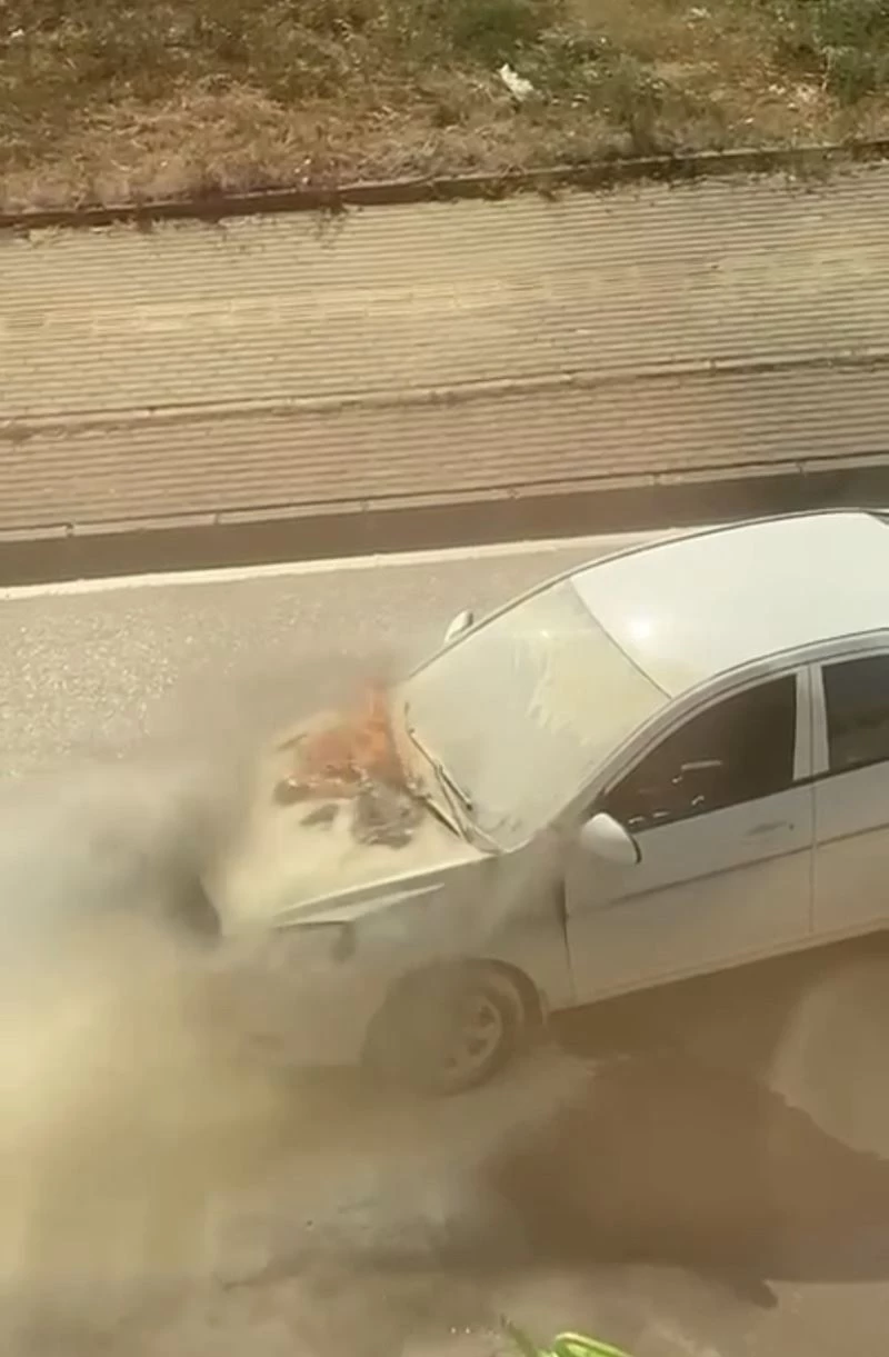 Bursa’da seyir halindeki bir otomobilin motor kısmında yangın çıktı.