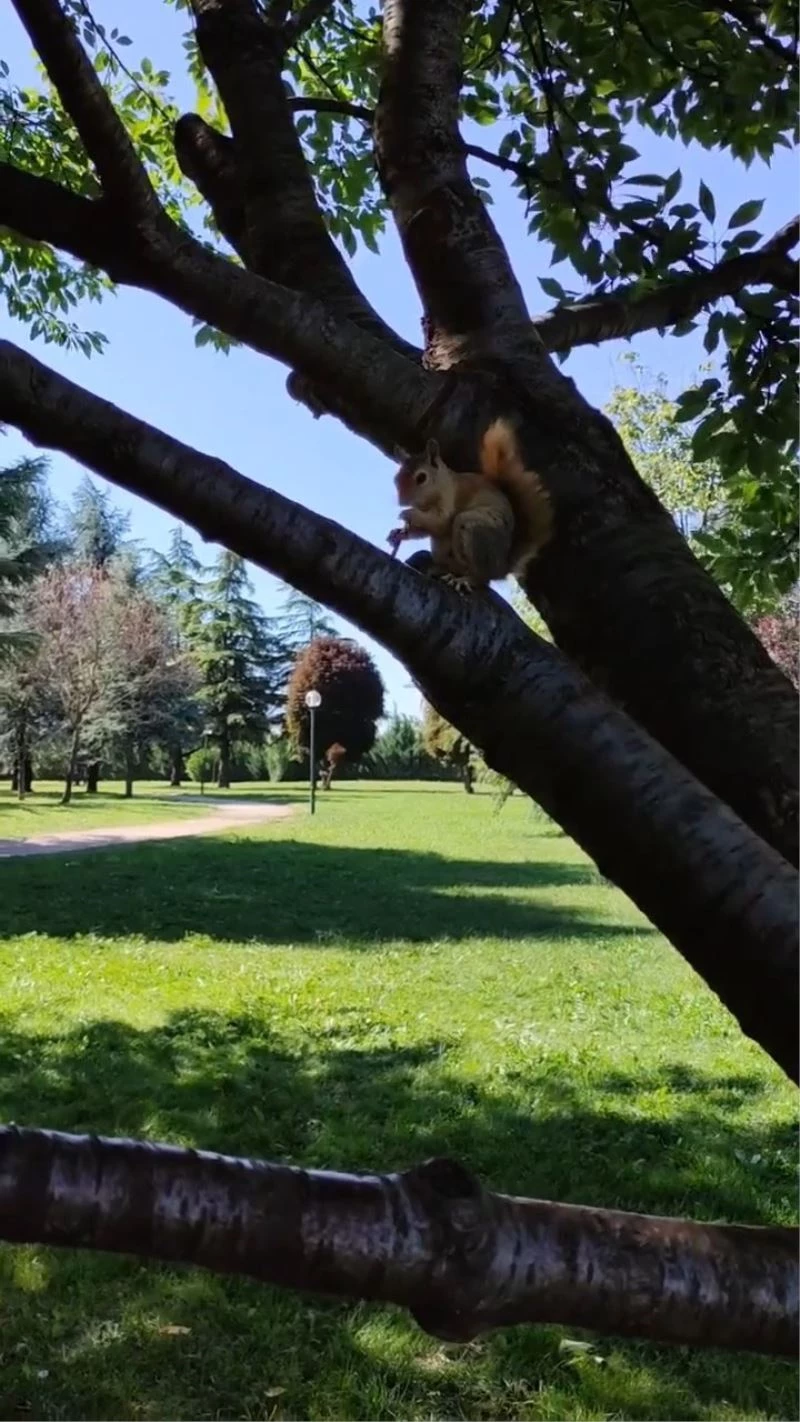 Bursa’nın Osmangazi ilçesinde bulunan botanik parka piknik yapmaya gelen bir ailenin yanına sincap geldi. Sincabın gelmesiyle birlikte şaşıran aile, cep telefonunu çıkararak o renkli anları kayıt altına aldı. Bir süre ailenin yanında bekleyen sincap, daha sonra geldiği yerden geri giderek gözden kayboldu.