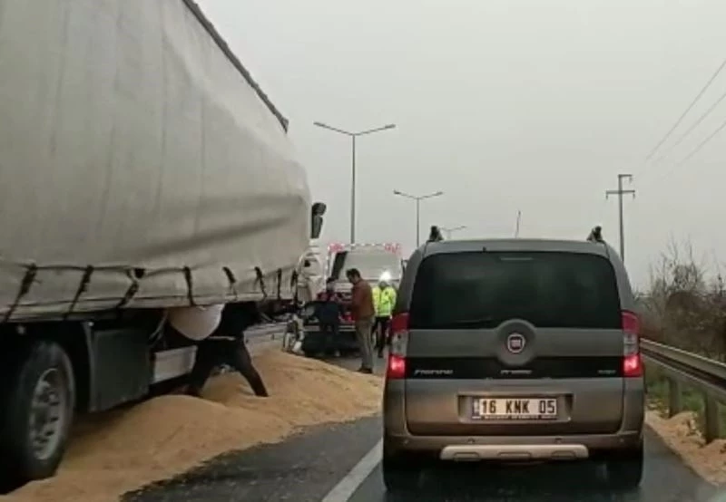 Kaza sabah 07.00 sıralarında Bursa-Ankara karayolu üzeri İnegöl girişinde meydana geldi. Bozüyük istikametinden İnegöl’e seyir halinde olan sürücü Turgut Kaya(41) yönetimindeki 16 ABA 220 plakalı tır, önünde seyir halinde olan sürücü Tahir Sara(34) yönetimindeki 63 ADS 25 plakalı tıra arkadan çarptı. Kaza sonucu sürücü Turgut Kaya Yaralandı. Yaralı olay yerine sevk edilen Ambulansla İnegöl Devlet Hastanesine kaldırıldı. Hurdaya dönen hububat yüklü tır, çekici yardımıyla yoldan kaldırıldı.
