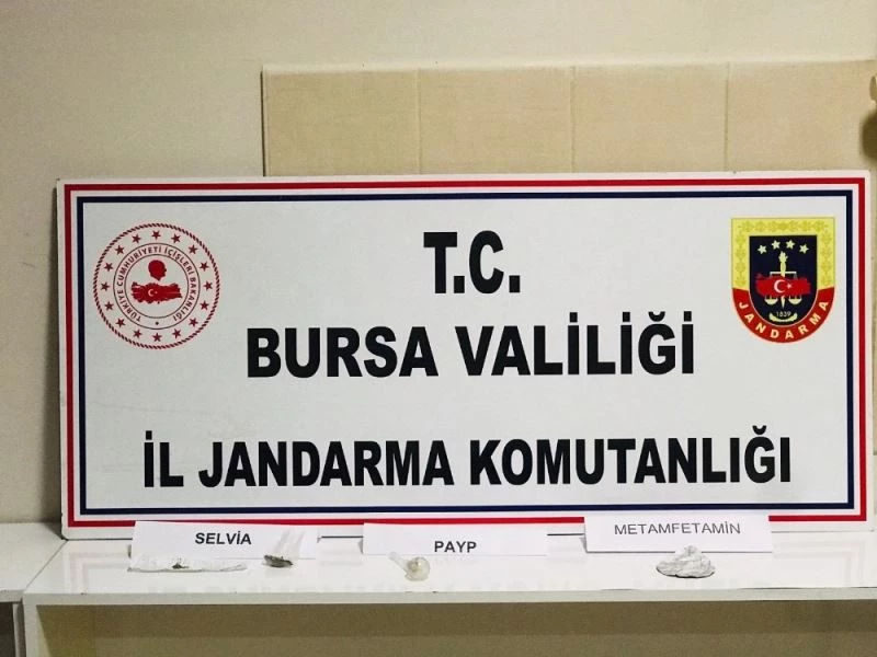 Bursa İl Jandarma Komutanlığı ekipleri tarafından yapılan uygulamada şüphe üzerine durdurulan araçta yapılan aramalarda, 35 gram metamfetamin, 10 gram esrar ve 1 adet payp diye tabir edilen cam malzeme ele geçirildi