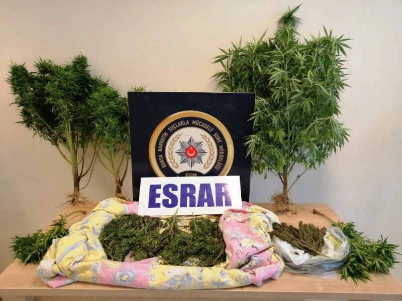 Bursa İl Emniyet Müdürlüğü Narkotik Suçlarla Mücadele Şube Müdürlüğü ekipleri tarafından yapılan uyuşturucu operasyonunda 3 kişi gözaltına alındı. Şüphelilerin ikamet ve araçlarında yapılan aramalarda çok sayıda Hint keneviri, 500 gram esrar, 400 gram toz esrar ve satışa hazırlanmış halde bir miktar metamfetamin bulundu. Adliyeye sevk edilen , M.Ş. ve U.E.K. tutuklanırken, A.K.’nşn emniyetteki işlemlerinin devam ettiği öğrenildi.
