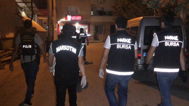 Bursa Emniyet Müdürlüğü Narkotik Suçlarla Mücadele Şube Müdürlüğü ekipleri uyuşturucu veya uyarıcı madde ticareti yapan şahıslara yönelik operasyon gerçekleştirdi. Narkotik ekipleri Kurban Bayramının son gününde yaptığı operasyonla sokak satıcılarına nefes aldırmazken, daha önce tespit edilen şüphelilerin kaldığı ikametlerin kapılarını koç başlarıyla kırıldı. Şüpheli şahısların ikametgahlarında narkotik köpeği fırtına ile yapılan aramalarda, 7 kilo 250 gram sentetik kannabionid uyuşturucu madde ele geçirilirdi. Ayrıca ekipler şüphelendikleri araçları ve sürücüleri de araçlardan indirerek arama yaptı. Gerçekleştirilen operasyonlarda 110 şüpheli şahıs sorgulandı ve ekipler çok sayıda şahıs gözaltına aldı.