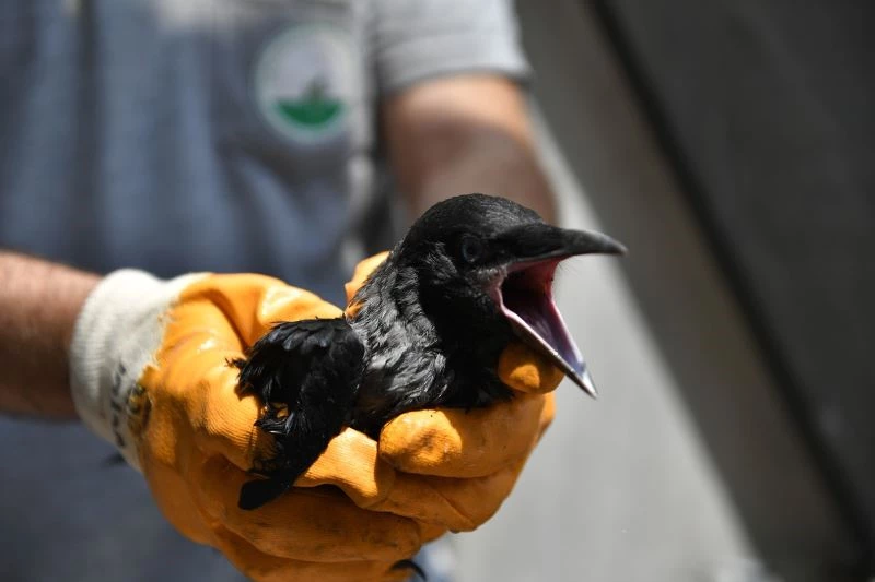 Bursa’da yavru karga su oluğundan böyle kurtarıldı