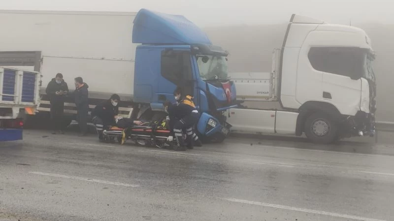 Bursa’nın İznik ilçesinde yoğun sis sebebiyle aynı yönde seyreden iki tır çarpıştı. Kazada bir kişi yaralandı. Sis ve kaza sebebiyle Yenişehir İznik karayolu bir süre trafiğe kapatıldı.