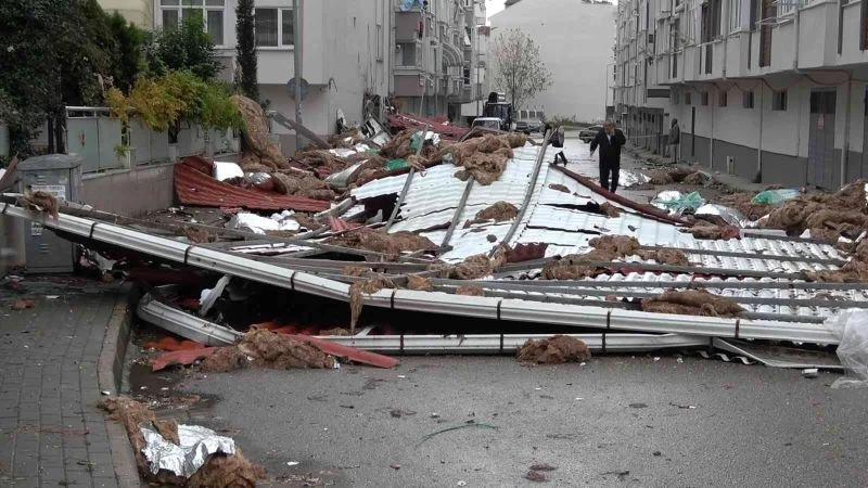 Bursa’da dün gece saatte 80 kilometre hıza ulaşan şiddetli lodos sonucu bir sitenin çatısı uçtu. Fırtına sonrası sokağa yayılan çatı parçaları bir aracı kullanılamaz hale getirirken, ortalık savaş alanına döndü. Diğer yanda sahil bandında denizin yükselmesi sonucu iş yerleri zarar gördü, tekneler karaya oturdu.
