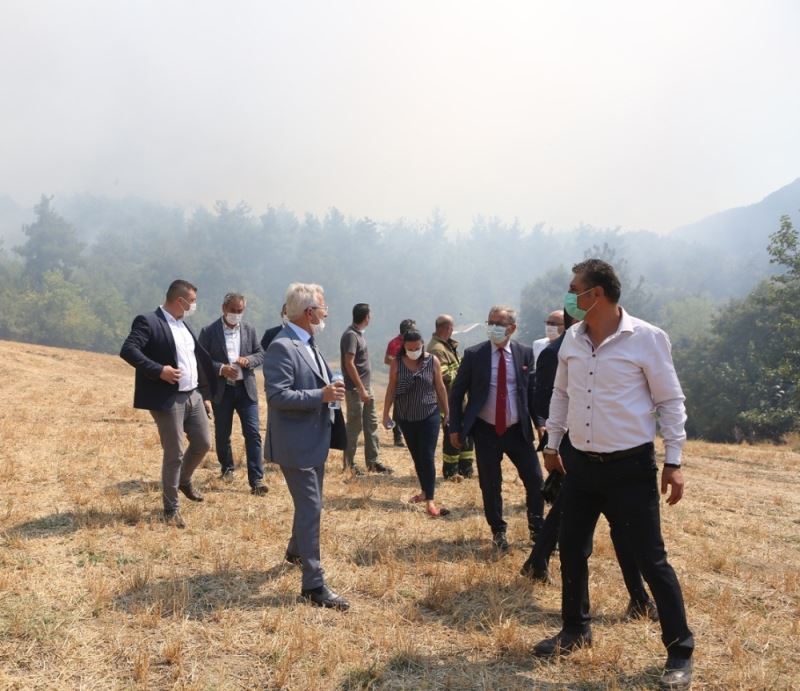 Nilüfer Belediye Başkanı Turgay Erdem de başkan yardımcıları ve ilgili birim müdürleriyle birlikte Demirci Mahallesi’ndeki orman yangınına yapılan müdahaleyi yerinde takip etti.