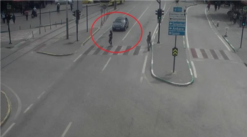 Bursa’da kuralları hiçe sayan sürücüler ve yayaların ölümden döndükleri anlar kent güvenliği kameralarına yansıdı. Yaya geçidinden geçen bir kadın ve bisikletli sürücü otomobillerin çarpmasıyla yaralandı. 50 metre ilerideki yaya geçidini kullanmayan bir kişi ise motosikletin çarpmasıyla ağır yaralandı. Bir köpek yaya geçidinden geçerken ona çarpmamak isteyen sürücü ise trafik direğine çarparak durabildi.