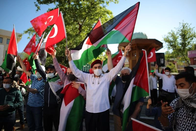 İsrail polisinin Kudüs’teki Mescid-i Aksa’da Filistinlilere saldırısı, Bursa 15 Temmuz Demokrasi Meydanı’nda bir araya gelen vatandaşlar tarafından protesto edildi. Bursa Sivil Toplum Kuruluşları Platformunun organize ettiği basın açıklamasına yaklaşık 200 kişi katıldı. Filistin ve Türk bayrakları taşıyan grup adına açıklama yapan Memur-Sen Bursa İl Temsilcisi Gökhan Yünkül, Mehmet Akif İnan’ın Kudüs şiiri ile konuşmasına başladı. Yünkül, “7 Mayıs Cuma günü yatsı namazının ardından İsrail güvenlik güçlerinin Mescid-i Aksa içerisine girerek başlattığı işgal girişimi devam ediyor. İbadet eden Filistinli Müslümanlara saldıran Siyonist rejim, Harem-i Şerif’te ibadet eden kadın, yaşlı, çocuk yüzlerce kişiyi yaraladı. Dünya kamuoyu Siyonist işgalci İsrail’in yeni bir zulmüne daha şahit oldu. İsrail’in son günlerde yaptığı saldırılar ve işgal girişimleri yalnızca Müslümanların yeryüzündeki en kutsal mekanlarından biri olan Mescid-i Aksa ile sınırlı kalmayıp, pek çok olayda daha kendini göstermektedir. Uzun zamandır var olan bu hak ihlallerinin ve saldırıların özellikle Ramazan ayında Mescid-i Aksa merkezli olarak Filistinli Müslümanların yaşadığı şehirde İsrail tarafından daha da arttırılması Filistinliler ve Müslüman alemi için bardağı taşıran son damla olmuştur” dedi.