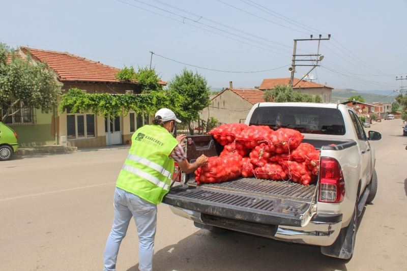Karacabeyli çiftçi Faruk Çakır, yetiştirdiği soğanların ilk hasadını ilçede yardıma muhtaç ailelere ulaştırması için Karacabey Belediyesi’ne verdi. Karacabey Belediyesi ekipleri de yaklaşık 100 tonluk soğanı tarladan sararak, Sosyal Yardım İşleri Müdürlüğü’nün tespit ettiği dar gelirli ailelere kısa sürede ulaştırdı.
