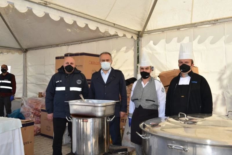 Bursa’dan gece yarısı yola çıkarılan 15 bin kişilik sıcak çorba ve ekmek, 25 bin kişilik çay, 10 bin adet meyve suyu ve bir tır su ile birlikte İzmir’e ulaşan 20 kişilik ikinci ekip de sabahın ilk ışıklarında kurdukları seyyar mutfaklarda depremzedelere hizmet vermeye başladı. Depremzedelerin yanı sıra gece boyunca arama kurtarma çalışmalarına katılan ekipler ve güvenlik güçlerinin içi Bursa Büyükşehir Belediyesi’nin dağıttığı sıcak çorba ile ısındı.