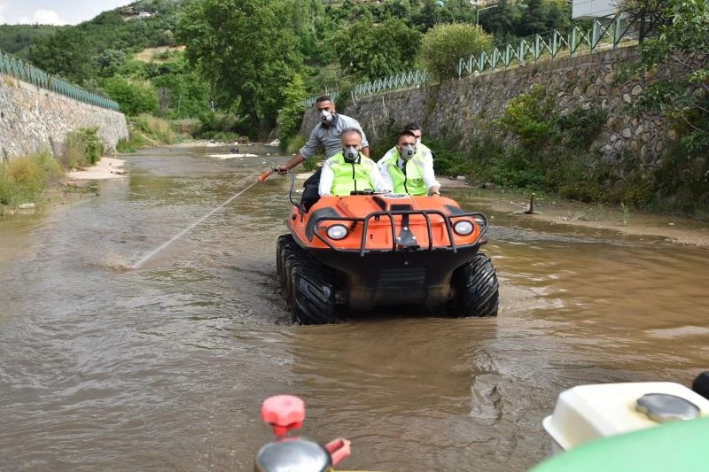 Bursa Büyükşehir Belediyesi, yaz aylarında halk sağlığını tehdit eden en önemli faktörlerinden biri olan sivrisinekle mücadele çalışmalarının startını Kestel ilçesinde verdi. Amfibik aracı kullanarak Mandıras Deresi’ne inip, bizzat ilaçlama faaliyetine katılan Büyükşehir Belediye Başkanı Alinur Aktaş, Bursa’nın her anlamda sorunsuz bir yaz geçirmesi için canla başla çalıştıklarını söyledi.
