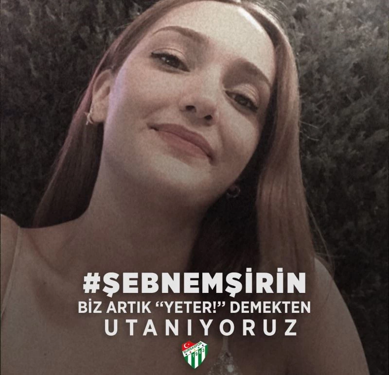 Bursaspor Kulübü, resmi sosyal medya hesaplarından, 25 yaşında erkek arkadaşı tarafından katledilen Şebnem Şirin için sessiz kalmadı.