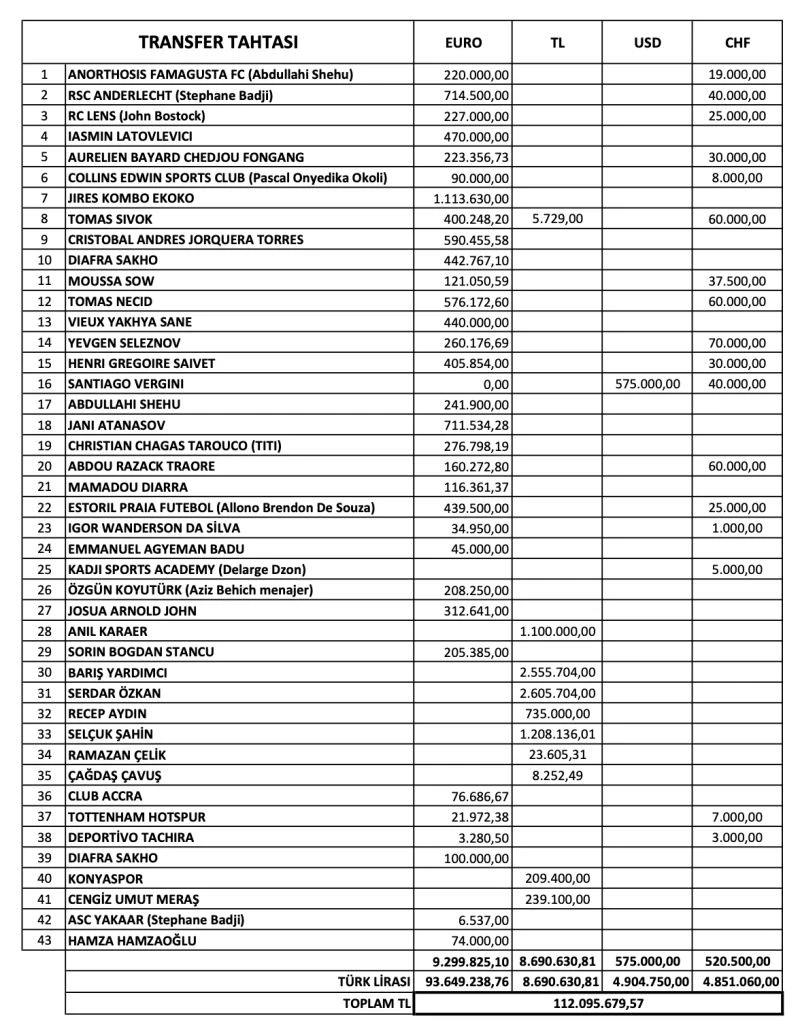 Bursaspor Kulübü ayrıca transfere engel dosyaların miktarları ve yapılan ödemeler hakkında da tablo paylaştı.