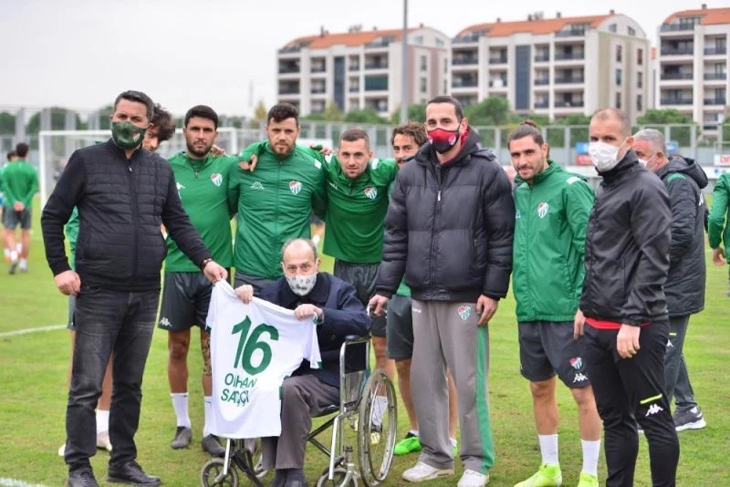 Bursaspor’un her zaman yanında olan yeşil beyazlı taraftar Orhan Saççı antrenmanı ziyaret ederek teknik ekip ve futbolcularla bir araya geldi. Yönetim Kurulu Üyesi Şenol Tosun, Orhan Saççı’ya imzalı Bursaspor forması hediye etti ve desteklerinden dolayı teşekkür etti.