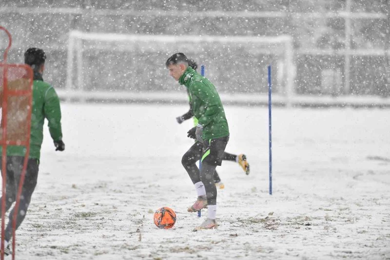 Bursaspor ara vermeden Balıkesirspor maçı hazırlıklarına startı verdi. Yeşil-beyazlı takım karlar altında çalışmasını sürdürdü.