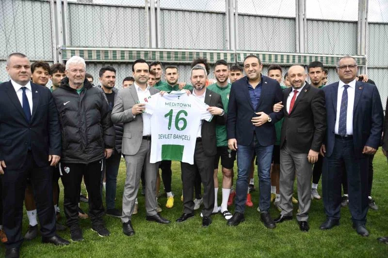 Bursaspor yönetimi, kulübü ziyarete gelen MHP Nilüfer İlçe Başkanı Levent Karakoç ve beraberindeki heyete, MHP Genel Başkanı Devlet Bahçeli’nin adının yazılı olduğu forma hediye etti. MHP heyeti de formayı yarın Bahçeli’ye vereceklerini söyledi.