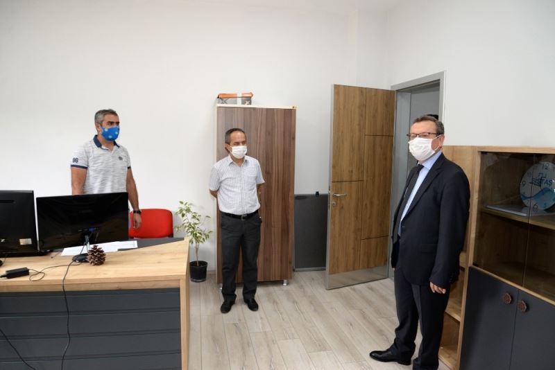 BUÜ Rektörü Prof. Dr. Ahmet Saim Kılavuz, Rektör Yardımcıları Prof. Dr. İrfan Kırıştıoğlu, Prof. Dr. Ferudun Yılmaz, Prof. Dr. Adem Doğangün ve Üniversite Genel Sekreteri Osman Dikmen ile birlikte online sınav sürecinden başarı ile çıkan Öğrenci İşleri Daire Başkanlığı ve Bilgi İşlem Daire Başkanlığı personeline teşekkür ziyaretinde bulundu. COVİD-19 salgını nedeniyle sıkıntılı bir süreçten geçtiklerini kaydeden Rektör Prof. Dr. A. Saim Kılavuz; “Bundan sonraki dönemde de süreç kısmen devam edecek. En kısa zamanda normal sürece geçmeyi ümit ediyoruz. Devletimiz tedbirlerini aldı. 15 Mart’tan itibaren eğitim öğretimin uzaktan yapılması konusunda karar açıkladı. Üniversitemizin öğrencileri de kendi yaşadıkları kentlere gittiler. Bizler de hemen o andan itibaren mevcut duruma adaptasyonu nasıl sağlayacağımızı düşünmeye başladık. Uzaktan eğitimin 30 Mart’tan itibaren başlaması gerektiğini anladık. 7-8 yıl önce Üniversitemiz bünyesinde UKEY sistemi devreye alındı. Biz bu sistemi biraz daha iyileştirdik” diye konuştu.