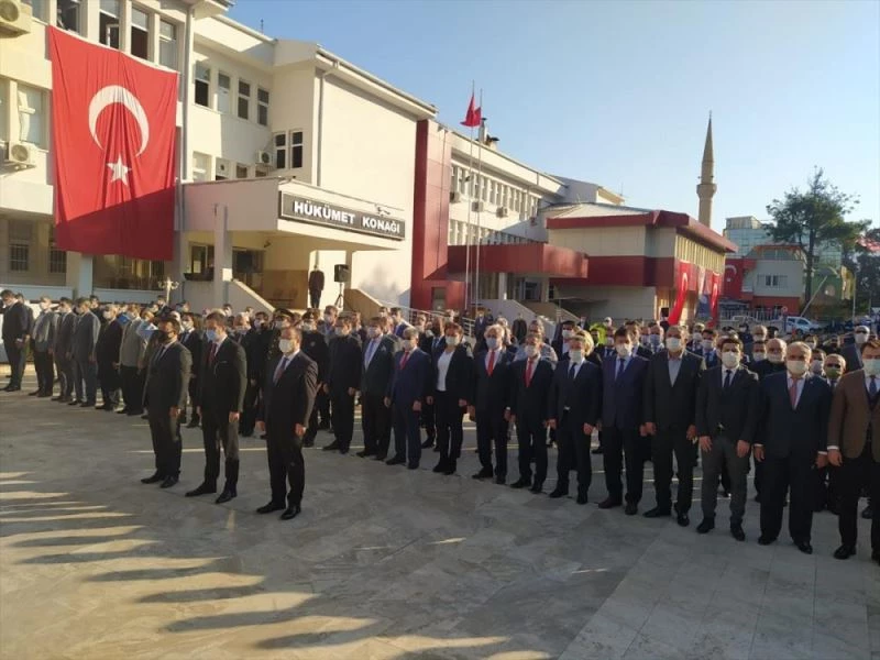 Atatürk Anıtı'na çelenk sunumuyla başlayan törende, saygı duruşunda bulunuldu ve ardından İstiklal Marşı okundu.