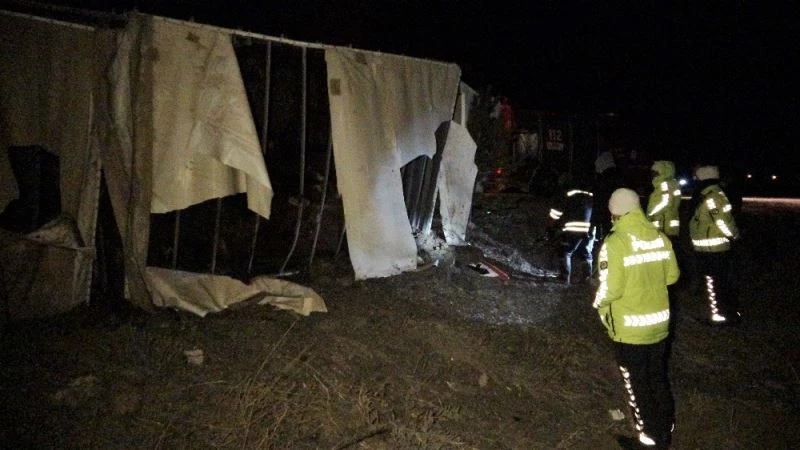 Büyükbaş hayvan yüklü tır devrildi, kurtarma çalışması başlatıldı