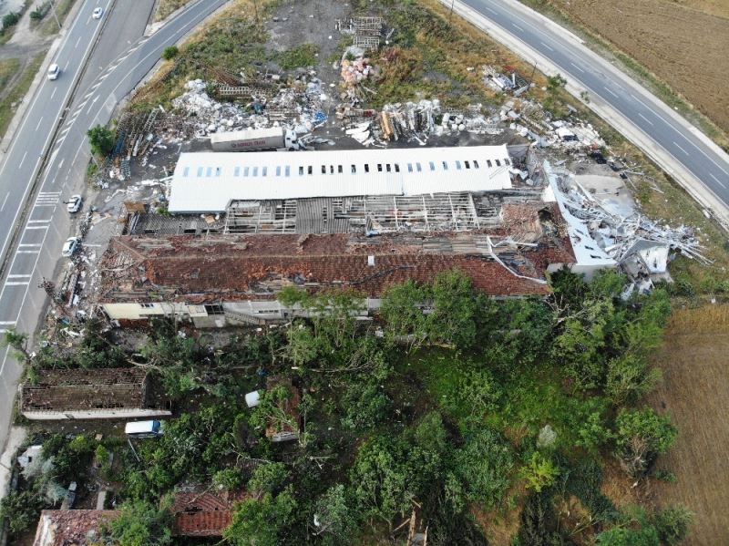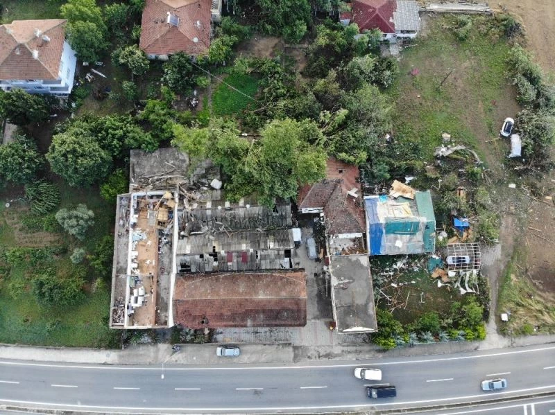 Büyükçekmece’de hortumun verdiği zarar havada görüntülendi