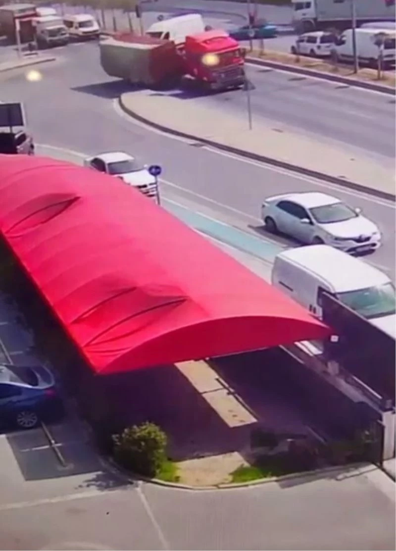 Büyükçekmece’de hurda metal taşıyan bir kamyon, kavşaktan döndüğü esnada devrildi. Kaza sonrasında yolun bir şeridi trafiğe kapanırken, yaşanan o anlar çevredeki bir işyerinin güvenlik kamerasına yansıdı.
