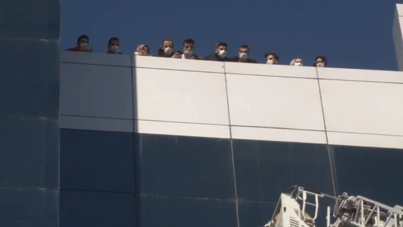 Büyükçekmece’de 8 katlı bir iş merkezinin depo kısmında kartonların yanmasıyla çıkan dumanlar paniğe neden oldu. Duman nedeniyle içeride mahsur kalan işçiler çatıya çıkarak yardım bekledi.
