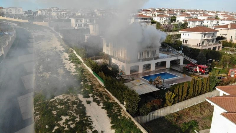 Büyükçekmece’de site içerisinde bulunan 3 katlı villanın 3’üncü katında çıkan yangın paniğe sebep olurken, vatandaşlar kendini dışarı attı. Yangın drone ile havadan da görüntülendi.