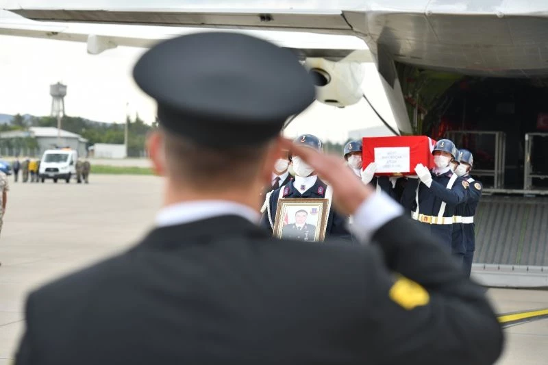 Askeri uçaktan indirilen şehidin naaşı, daha sonra toprağa verilmek üzere memleketi Yozgat’ın Sarıkaya ilçesine uğurlandı.