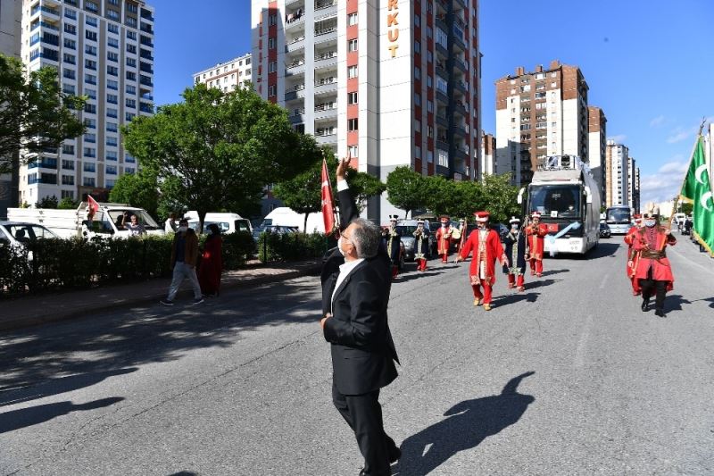 Büyükşehir Belediye Başkanı Dr. Memduh Büyükkılıç, daha sonra mehter takımı ile birlikte yürüdü ve mehter marşları eşliğinde balkonlardaki vatandaşları selamladı.