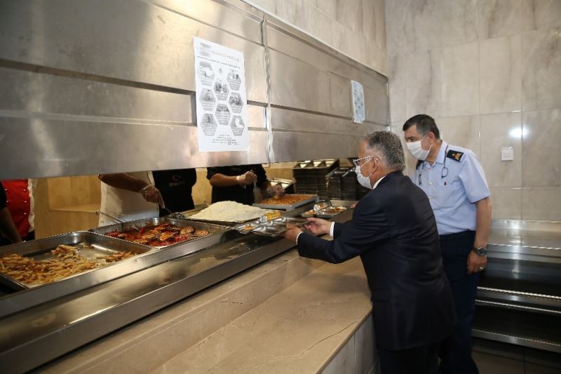 Büyükşehir Belediye Başkanı Memduh Büyükkılıç’ı, 2’nci Hava İkmal Bakım Merkezi Komutanlığı’nı ziyaretinde Tuğgeneral Ercan Teke ve askerler karşıladı. Garnizon Komutanı Ercan Teke ile birlikte 2’nci Hava İkmal Bakım Merkezi yemekhanesine giden Başkan Büyükkılıç, askerle birlikte öğle yemeğini yedi. Tepsiyi alıp sıraya giren ve kendi yemeğini alan Başkan Büyükkılıç, sosyal mesafe kurallarına göre askerlerle birlikte aynı masada oturu. Askerle bir süre sohbet eden Başkan Büyükkılıç, “Rabbim Pençe Harekatı’nda kahramanca mücadele eden askerlerimizi ve tüm güvenlik güçlerimizi korusun” dedi.