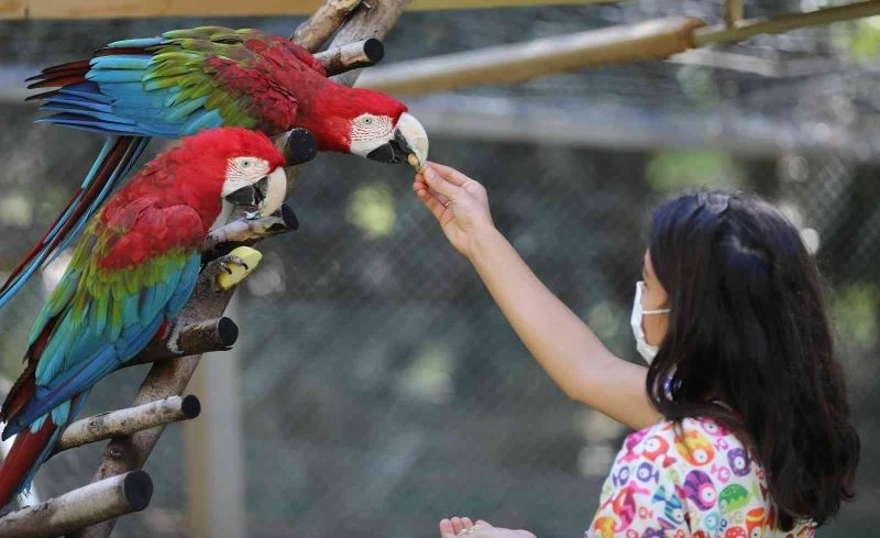 Bu yıl hayvanat bahçesi yeni ve sevimli üyeleriyle daha da renklendi. “Ara Papağan” türlerinden Aşuk ile Maşuk’un yavruları ‘Balkuş’ bakıcıları tarafından özenle besleniyor.