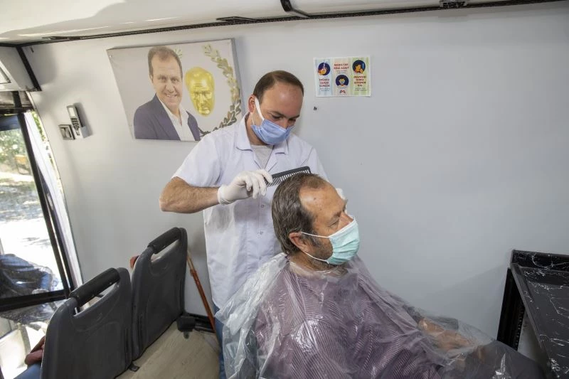 Mobil Kuaför hizmeti kapsamında vatandaşlar saç kesimi, saç boyası gibi işlemleri yaptırırken, hijyen kurallarına da dikkat ediliyor. Büyükşehir Belediyesi Sosyal Hizmetler Dairesi Başkanlığı bünyesinde hizmet vermeye devam eden Mobil Kuaförden faydalanan vatandaşlar araçtan memnun ve yüzleri gülerek iniyor. 2 kadın, 2 erkek bölümü olmak üzere toplam 4 kişilik yeri olan araca vatandaşlar pandemi nedeniyle tek tek alınıyor. Kullan at malzemelerle hizmet verilen araçta, ekipmanlar her kullanım sonrası sterilizasyon makinesinde dezenfekte ediliyor.